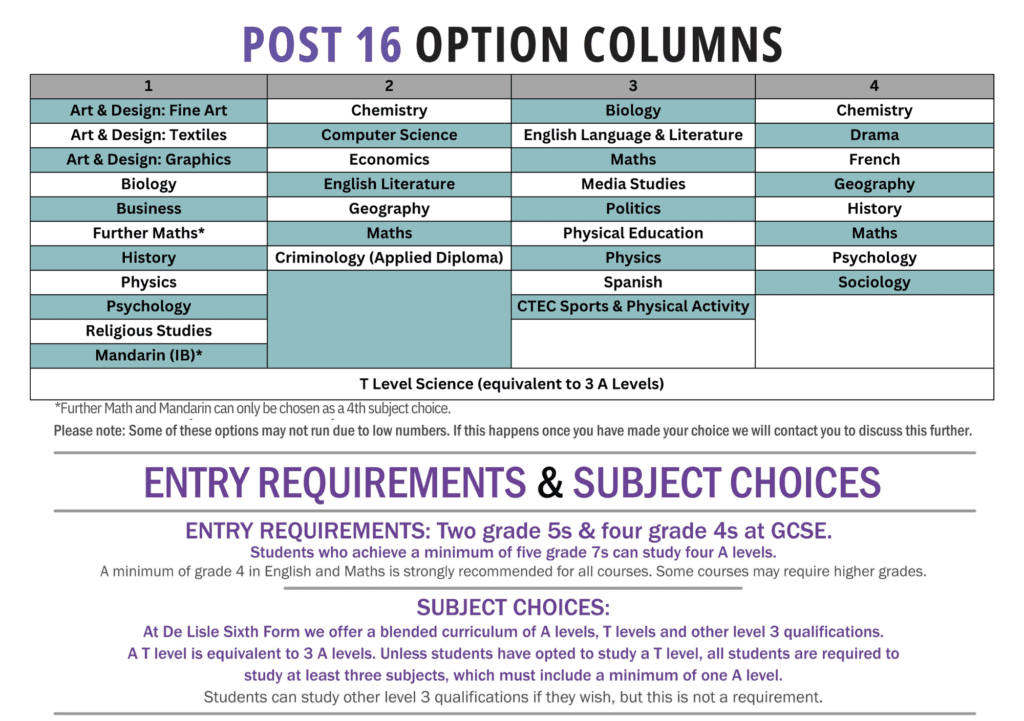 Please contact our Sixth Form team if you have any questions by emailing post16@delisle.leics.sch.uk in the first instance.